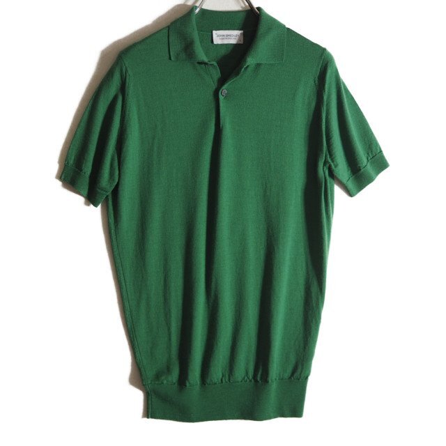 > P3159f6 ▼JOHN SMEDLEY ジョンスメドレー▼ 英国製 ショートスリーブ ニットシャツ / ポロシャツ グリーン S / ウールニット 半袖 春夏
