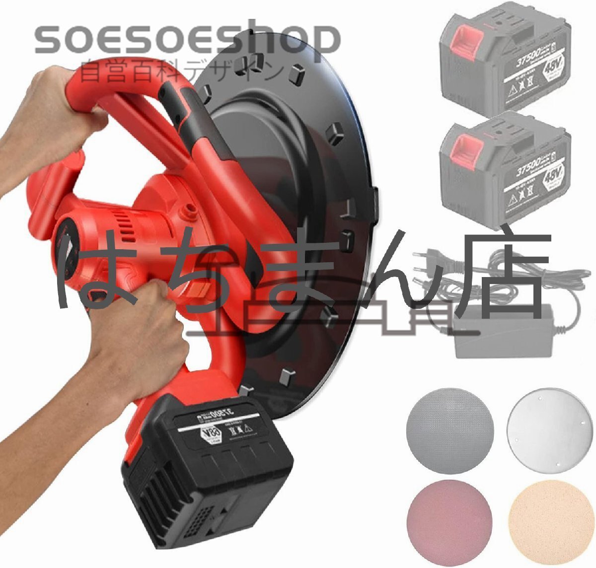 > 電気サンダー セメント ポリッシャー 充電式 ハンドヘルド乾式壁サンダー コードレス 壁面平滑化研磨機 天井および壁用 SXZGJS 電池2個