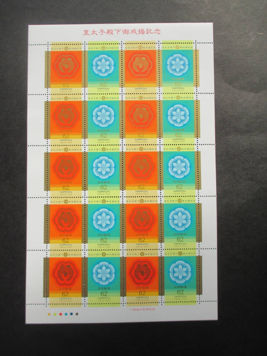 - コレクター出品 記念切手★シート 皇太子殿下御成婚 62円額面 発売日 1993.6.8【13-63】