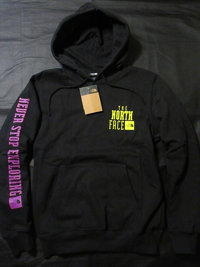 - 本物正規◆ノースフェイス◆スウェットパーカー BRAND PROUD 袖ロゴ■XL■黒 LEDYLLW■新品/アメリカ限定■H21/裏地起毛