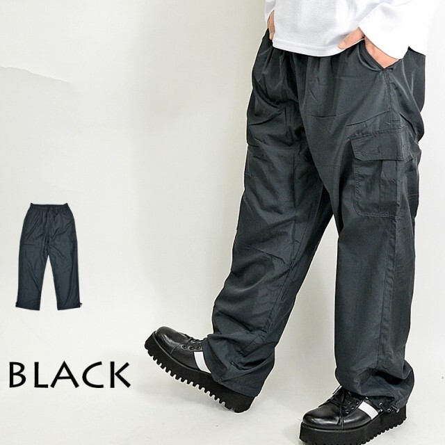 - アシメ左右非対称 ポリ素材 ワイド カーゴパンツ 左右非対称 38661 メンズ トリコット 新品 ブラック L