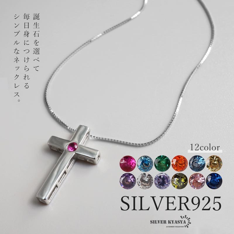 - (3月 アクアマリン) シルバー925 クロスネックレス 誕生石ネックレス 極細 シルバー レディース 金アレ対応