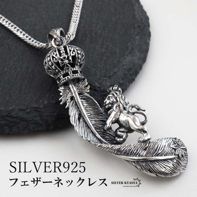 - (60cm) シルバー925 フェザーネックレス ペンダントネックレス ダブル喜平ネックレス 燻し メンズ 男性 金アレ対応