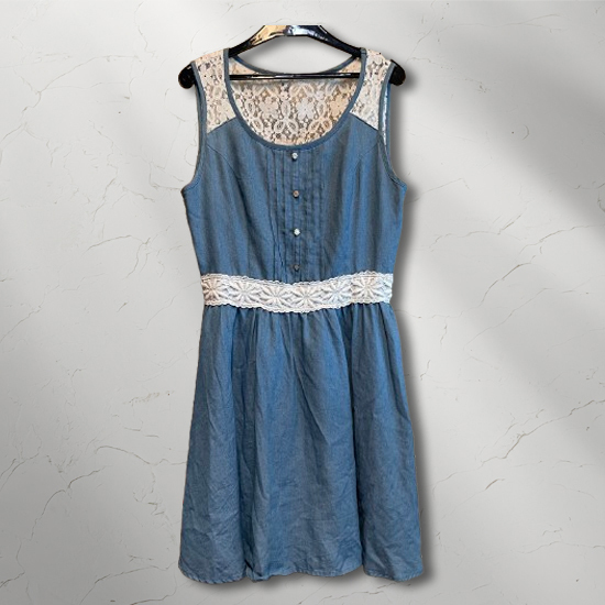 - セシルマクビー 透け感レース シャンブレー素材 ノースリーブワンピース Mサイズ
