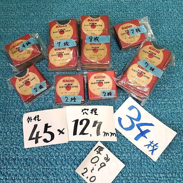 - 【アウトレット品】 NACHI スリワリフライス 外径45㎜ 厚み0.9~2.0㎜ 穴径12.7㎜ ミゾ無し 計34枚セット 内1枚は穴径違い sp-030-318