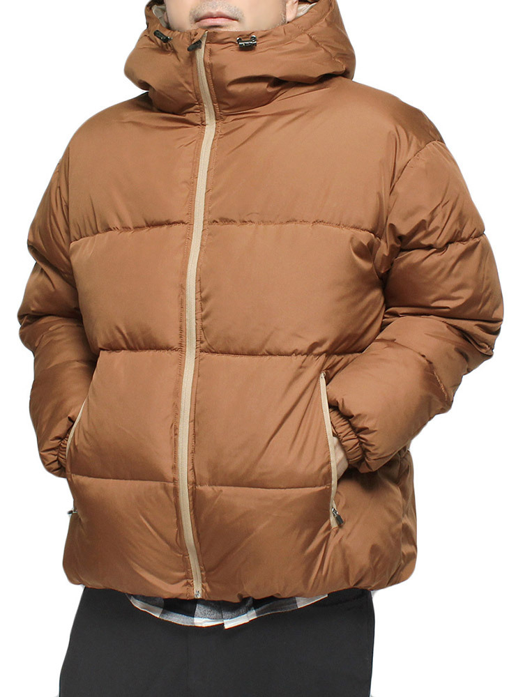 - 【新品】 LL ブラウン 中綿 ダウンジャケット メンズ 撥水加工 軽量 ジップアップ ボリュームネック パーカー ブルゾン