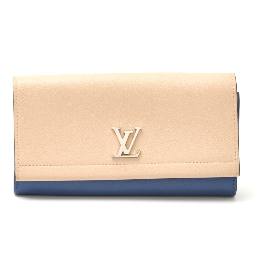 - LOUIS VUITTON ルイヴィトン ポルトフォイユ・ロックミーII M62327 ウォレット 財布 カーフレザー ベージュ×ブルー×シルバー レディース