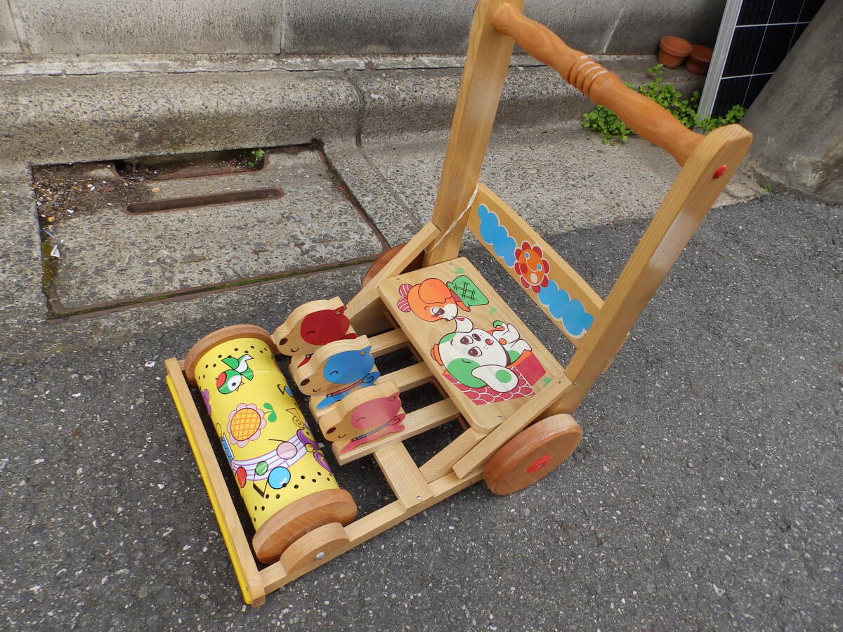 - 木製 手押し車 カタカタ 37cmx30cmxH42cm 中古! 折りたたみ可能!