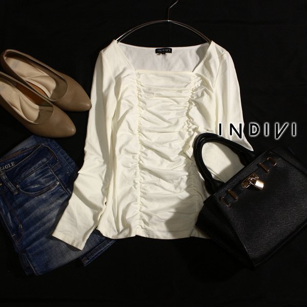 - 美品 INDIVI インディヴィ 綺麗め シャーリングギャザー ストレッチ カットソー 05号 XS 春 夏 25C02