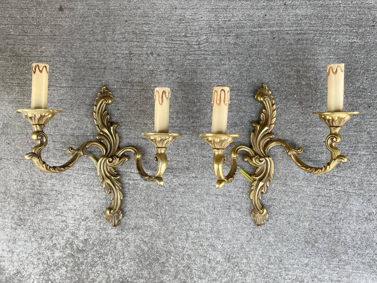 > 11. 2個セット!フランスアンティーク ランプ ブラケット 2灯 キャンドル 照明 ライト ウォール 蚤の市 店舗 什器 カフェ 美容室