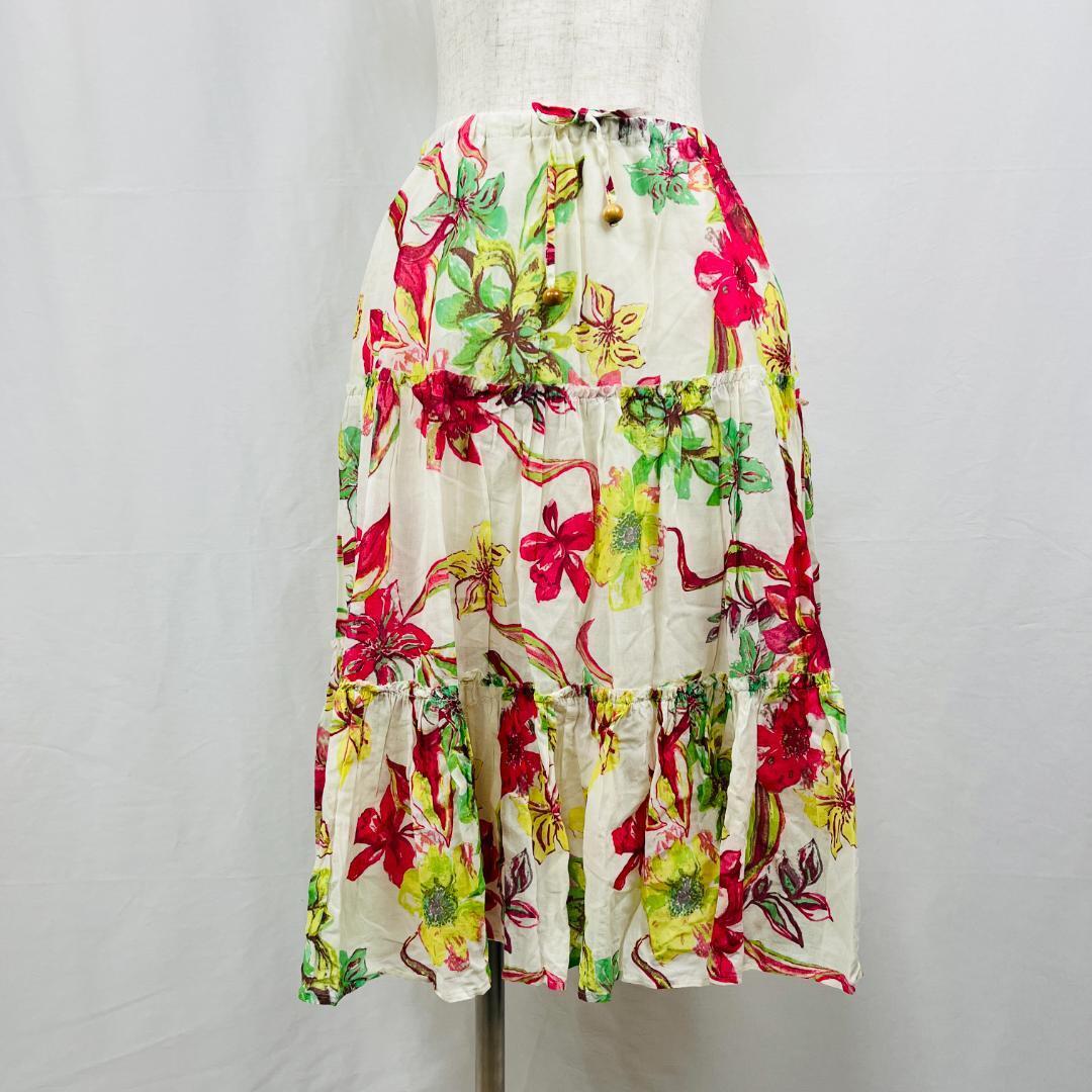 - 【2059】abc une face アーベーセーアンフェイス ピンク グリーン 総柄 ウエストゴム 花柄 ティアードフリル スカート 可愛い