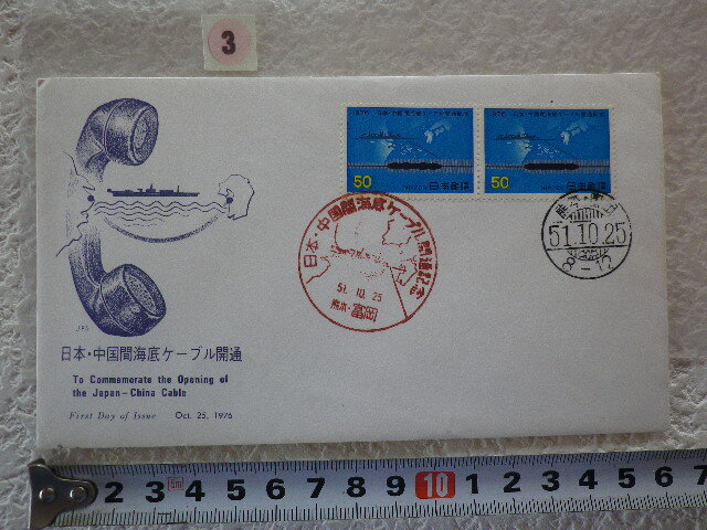 - FDC 日本・中国海底ケーブル 1976年 2貼2消 説明書有●3●