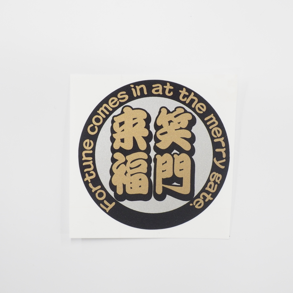 - (メタリック)おもしろ 縁起物 ことわざステッカー 黒ゴールド 1枚 6cm 『笑門来福』(笑う門には福来る)四字熟語