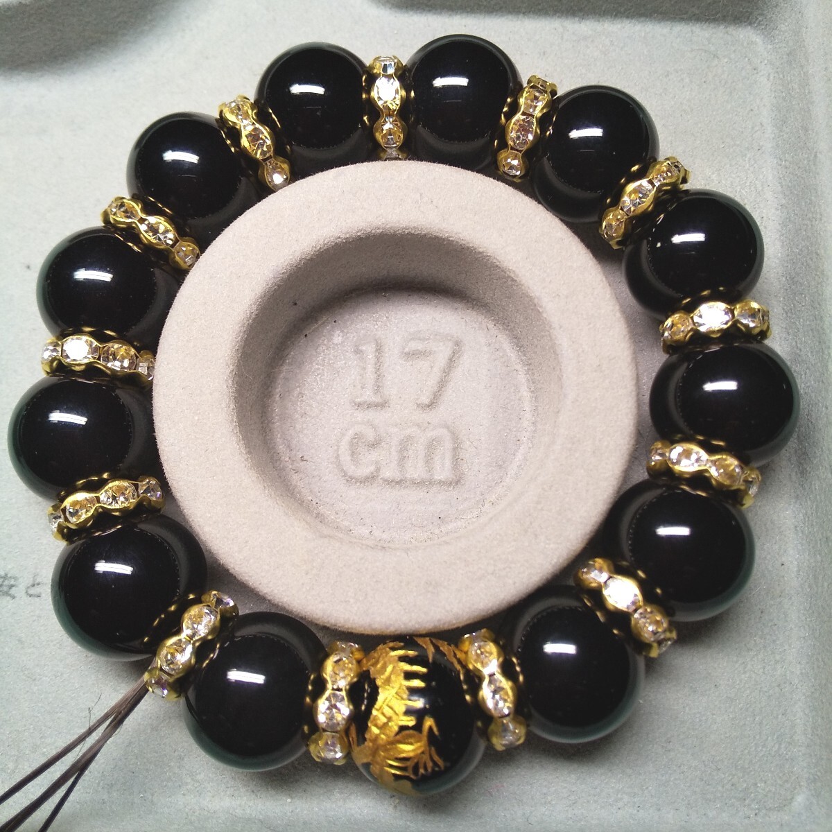 > 1月守護石 天然石 大玉オニキス16㎜ + オニキス金龍16㎜ + 総金色ロンデルブレスレット 内径17,5cm位 男性LLサイズ【魔除け】ブリコラ屋
