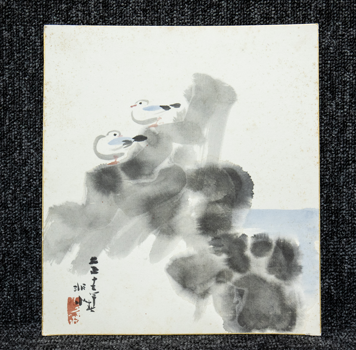 - 色紙ー1699 杉浦非水 海に小禽 グラフィックデザイナー 画家【真作】
