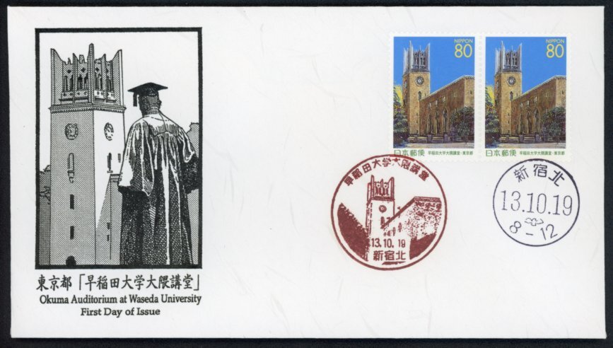 - 1310 【FDC】ふるさと 東京都「早稲田大学大隈講堂」[新宿北/13.10.19/鳴美版](解説書なし)