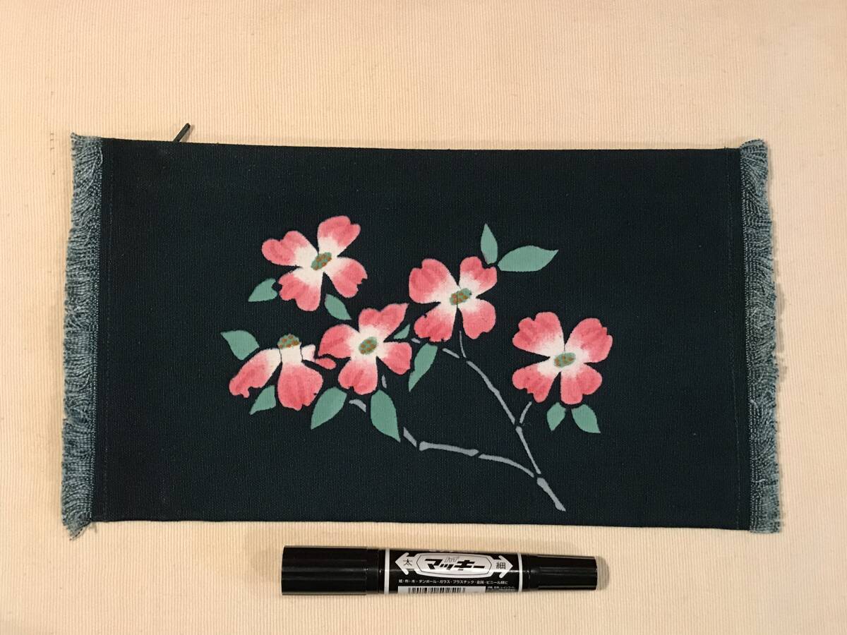 - A8967●布製 クラッチバッグ 薄型ポーチ 小物入れ ハナミズキ 花水木 黒グリーン 約33×17.8㎝ 未使用長期保管品