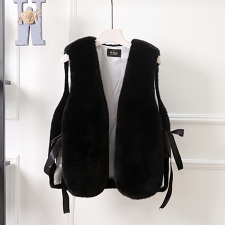 - 新入荷レディース ファッション 毛皮ベスト 袖なし もこもこ エレガント 無地 ゆったりブラックお色選択可