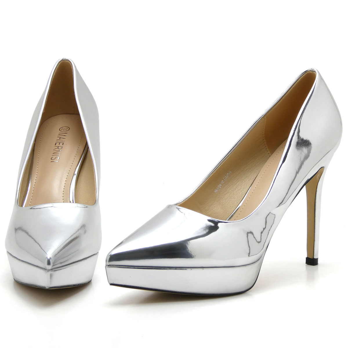 - 新品 大きいサイズ パンプス シルバー 26cm 131403-42 エナメル調 前厚底ストーム ハイヒール