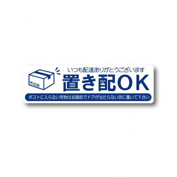 - 置き配OK ステッカー ホワイト マットラミネート 新品 高耐候 防水 UVカット 120X35mm 日本製 国内生産 賃貸住宅 宅配便 置き配OK 玄関前に