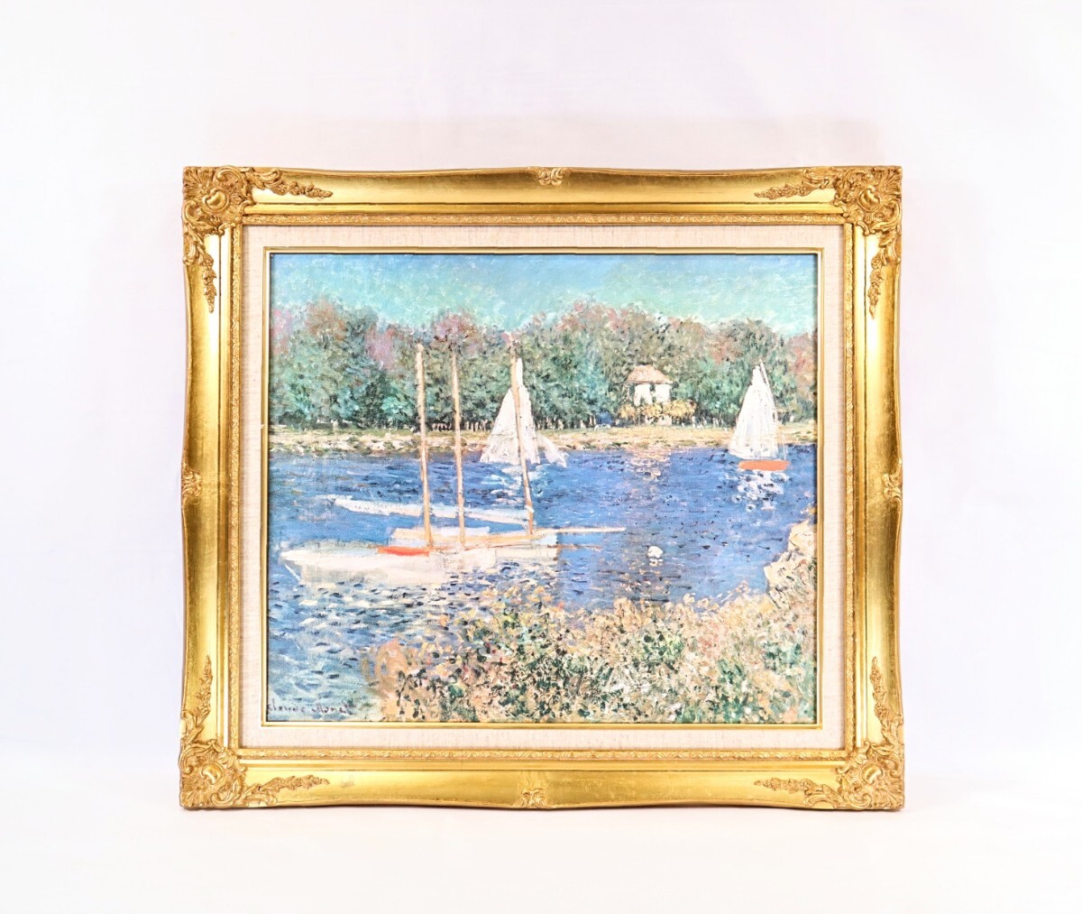 > クロード・モネ 複製「アルジャントゥイユの停泊地」画寸 53×45.5cm F10 仏印象派巨匠 パリ郊外セーヌ河畔からの風景を描く1874年作 10594