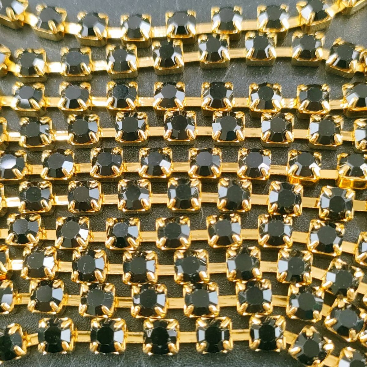 - ☆ほぼ未使用 SWAROVSKI スワロフスキー ヴィンテージ ルース カップチェーン 連爪 4 mm 約100cm ブラック×ゴールド色 アクセサリー B-111