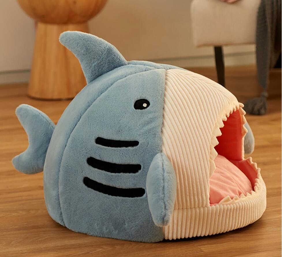 > ブルー / 猫 犬 ベッド サメ型ペットベッド ふわふわ もこもこ キャット 滑り止め ペット クッション 柔らかい / S、M、L サイズ選択可