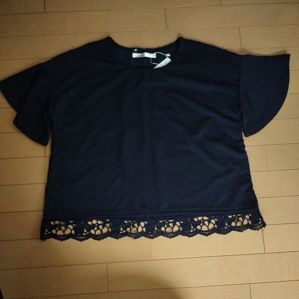 - 新品☆濃紺 半袖トップス☆ゆったりでレースが上品 スーツのインナーにも!