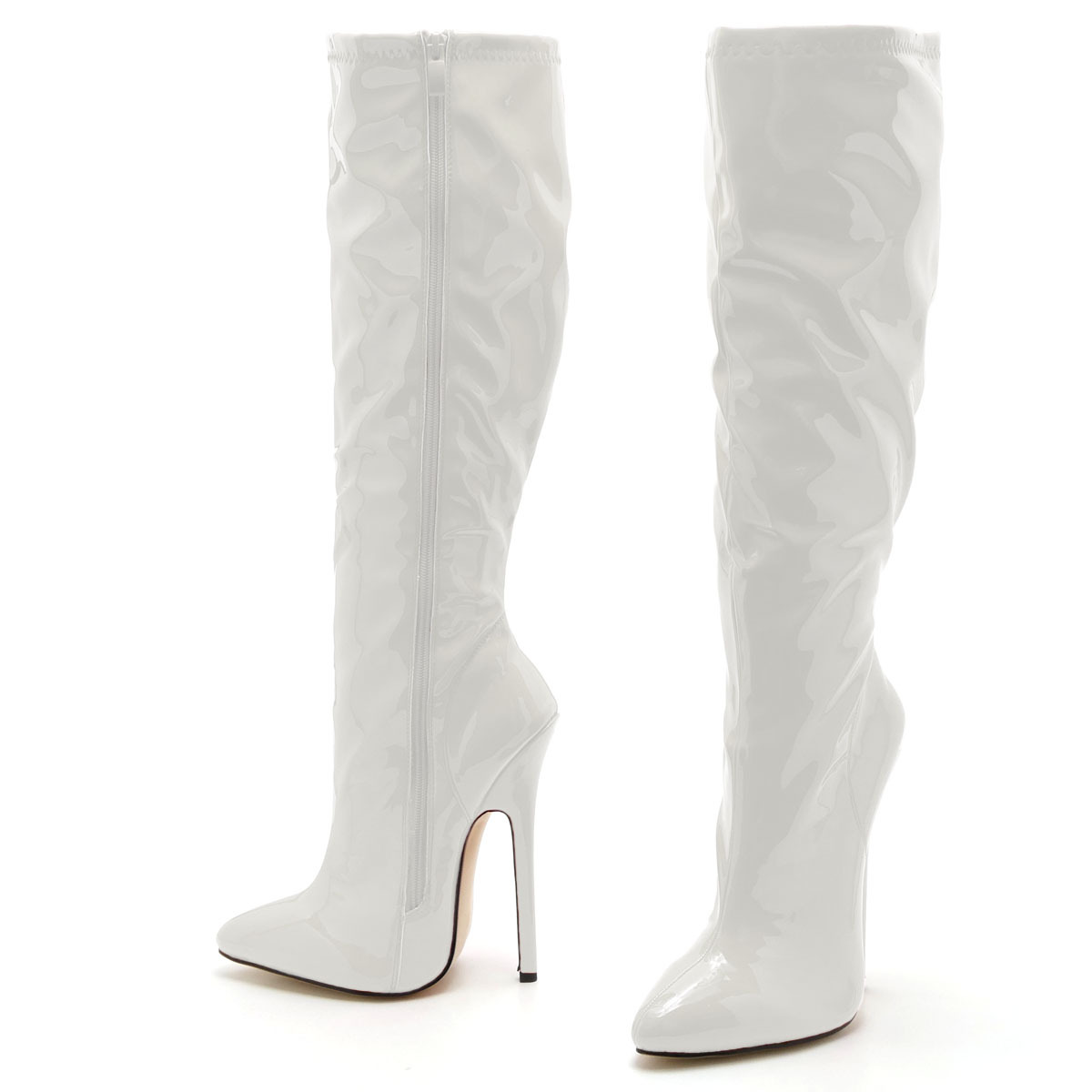 - 新品 大きいサイズ ロングブーツ ホワイト 26cm 137325-42 17cmヒール エナメル調 ハイヒール