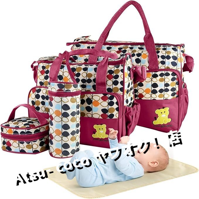 - おむつバッグトート5点セット - ママ用ベビーバッグ(レッド), レッド