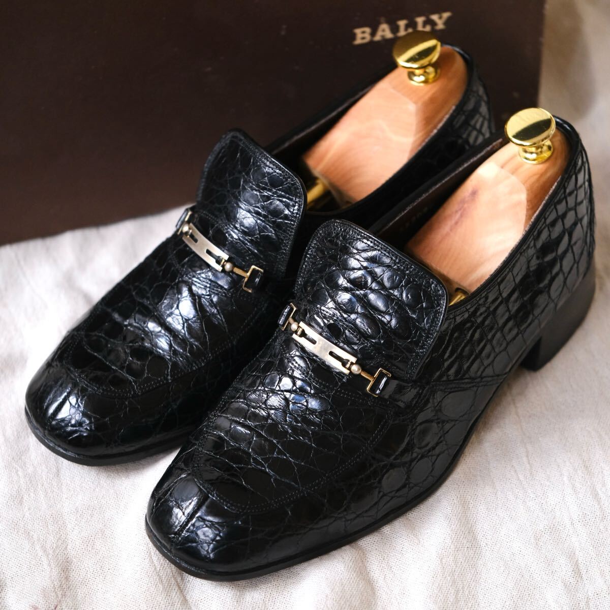 - BALLYバリー クロコダイルゴールドビットローファーS1652ブラック55E