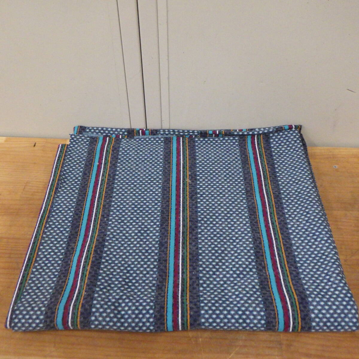 - 185×156 昭和 レトロ 洋服 生地 端切れ 素材 青 赤 白 黄 線 ライン 柄 模様 点