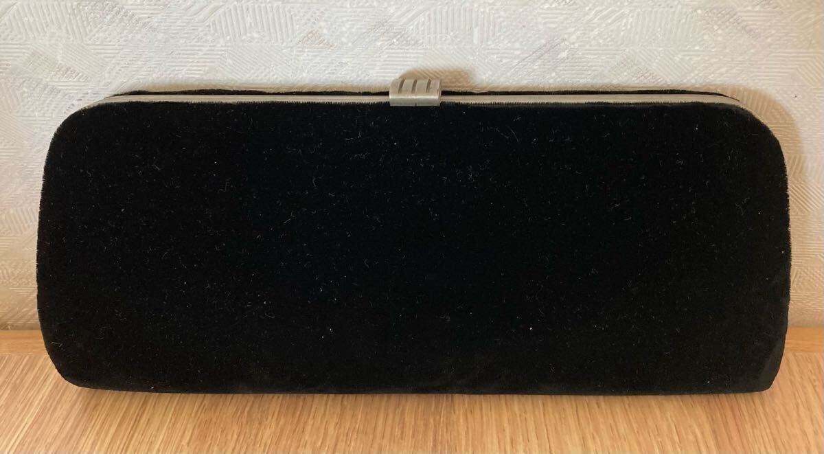 - アンティーククラッチバッグ ブラック ベルベット ハンドバッグ イブニングバッグ