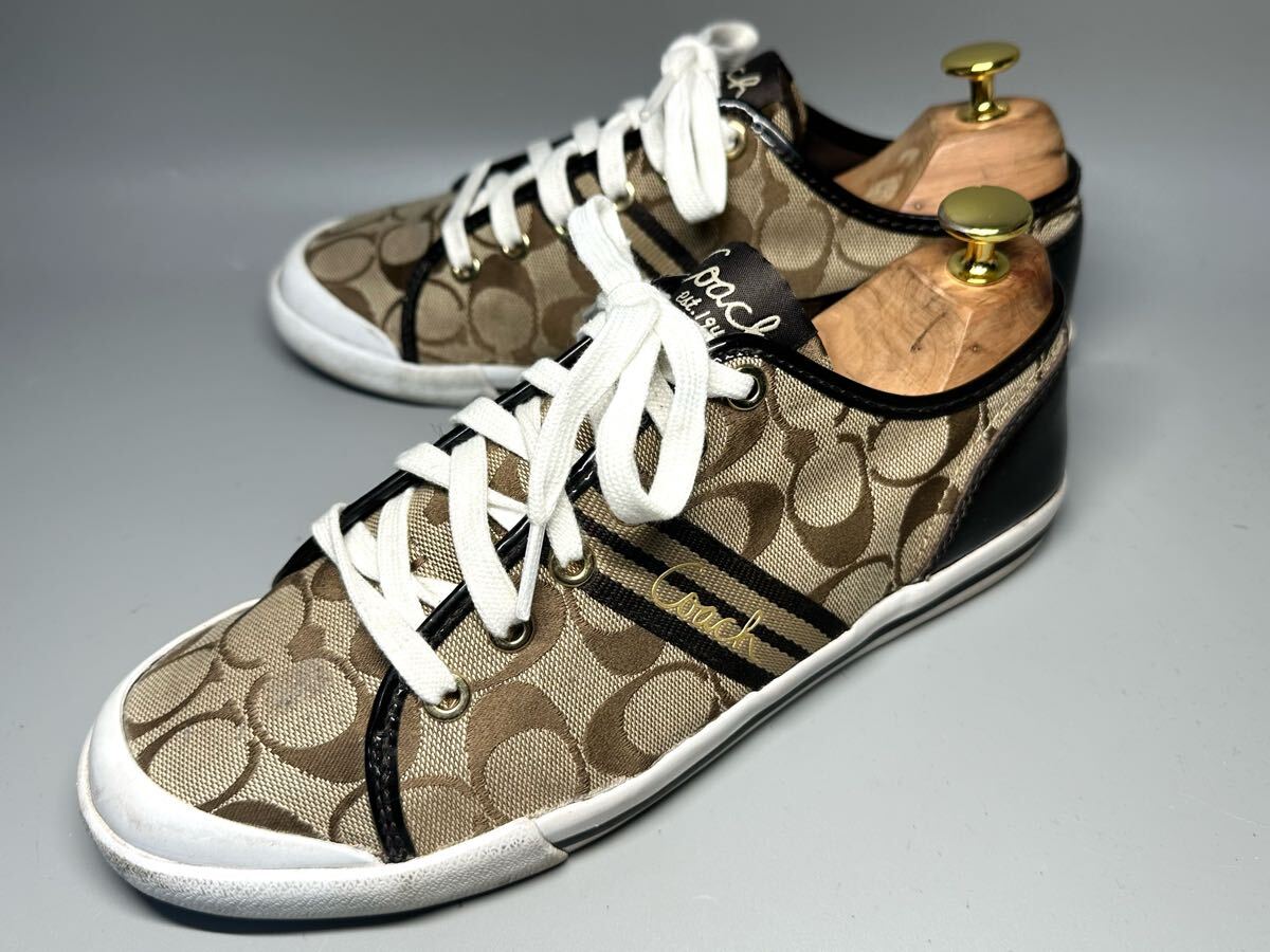 > 【即決】COACH コーチ レディース 26cm程度 9 メンズ スニーカー ブラウン 茶色 ロゴ カジュアル レザーシューズ レザー 1024
