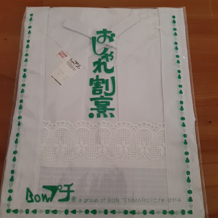 - 新品 未使用 和装 かっぽう着 割烹着 白 丈85cm フリル付き Bowプチ おしゃれエプロン 昭和 レトロ 送料無料 匿名配送