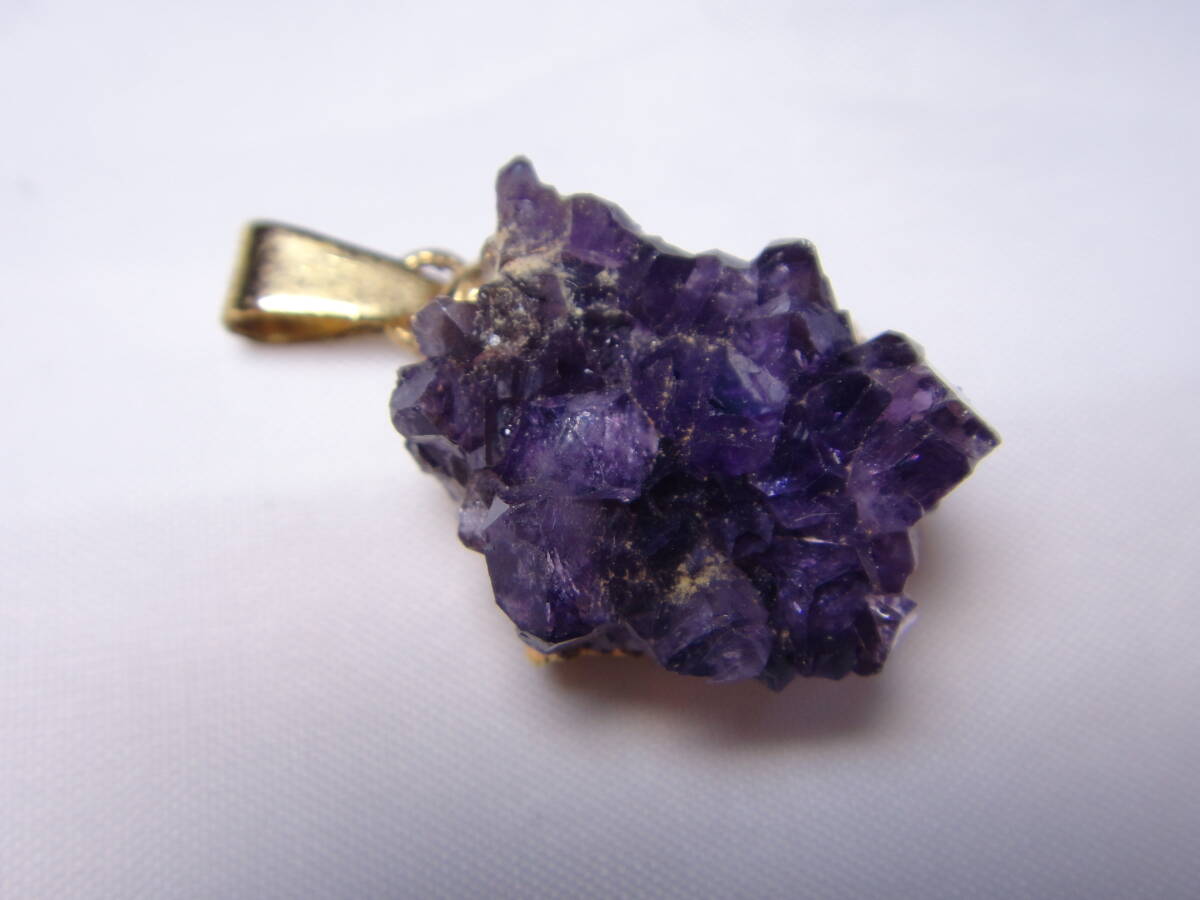 > 天然石 アメジスト 原石 小クラスター ペンダントトップ チャーム ヴィンテージ アクセサリー作り・ハンドメイド用部品にも C172