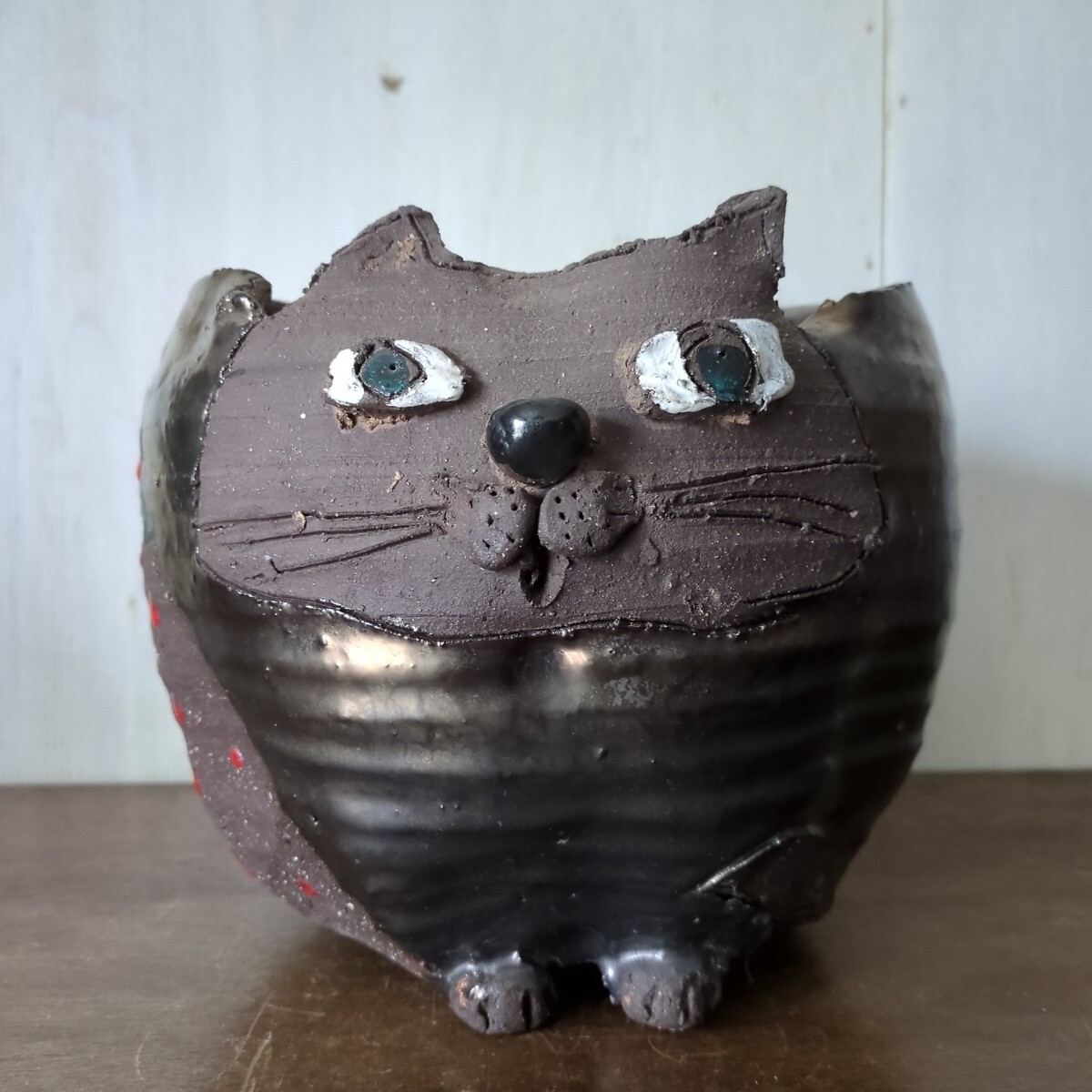 - 馬酔木窯 あびし 陶芸家 森正 猫 ワインクーラー 置物 箱無し 陶器 アート ねこ ネコ 万古焼 萬古焼