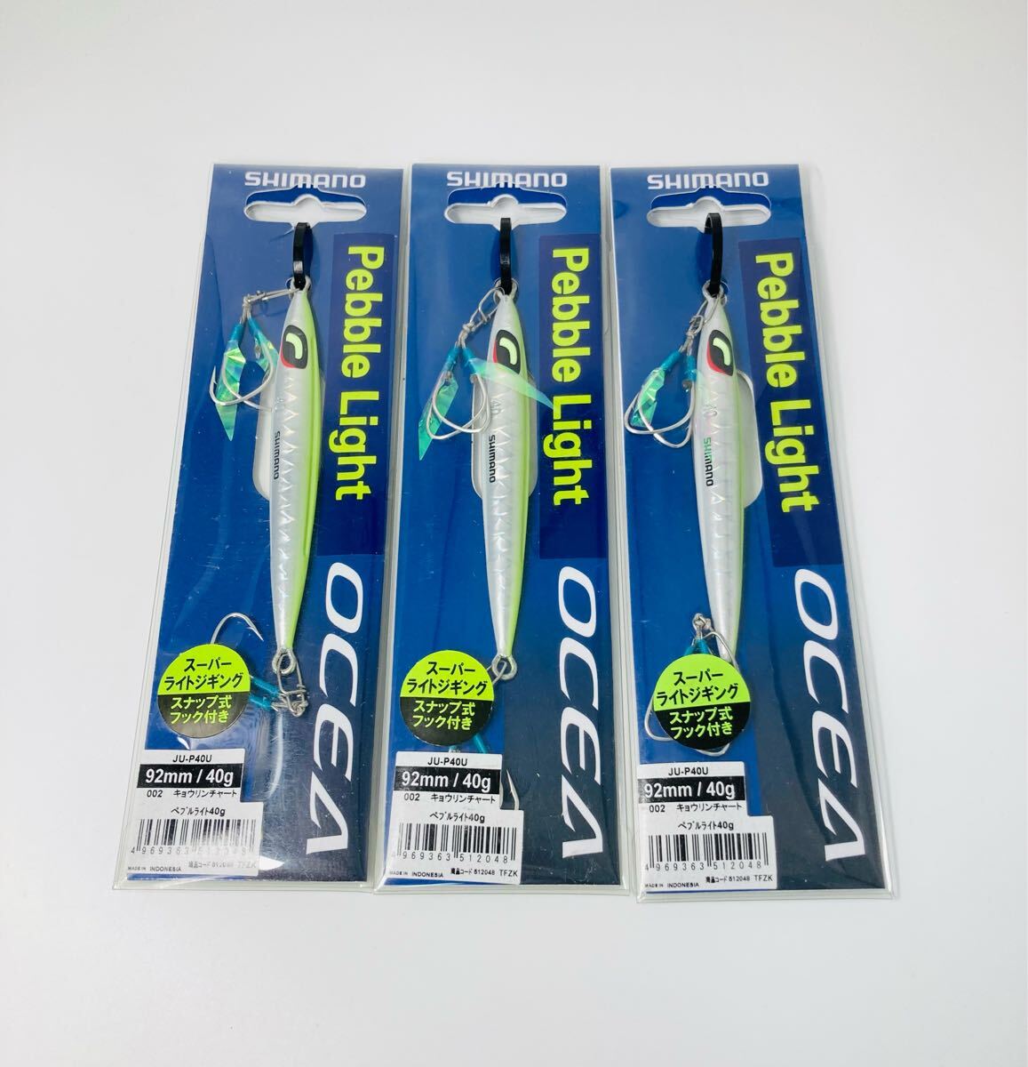 - 【未使用品】シマノ SHIMANO オシア ペブルライト 40g キョウリンチャート 3点セット OCEA Pebble Light SLJ ジギング メタルジグ