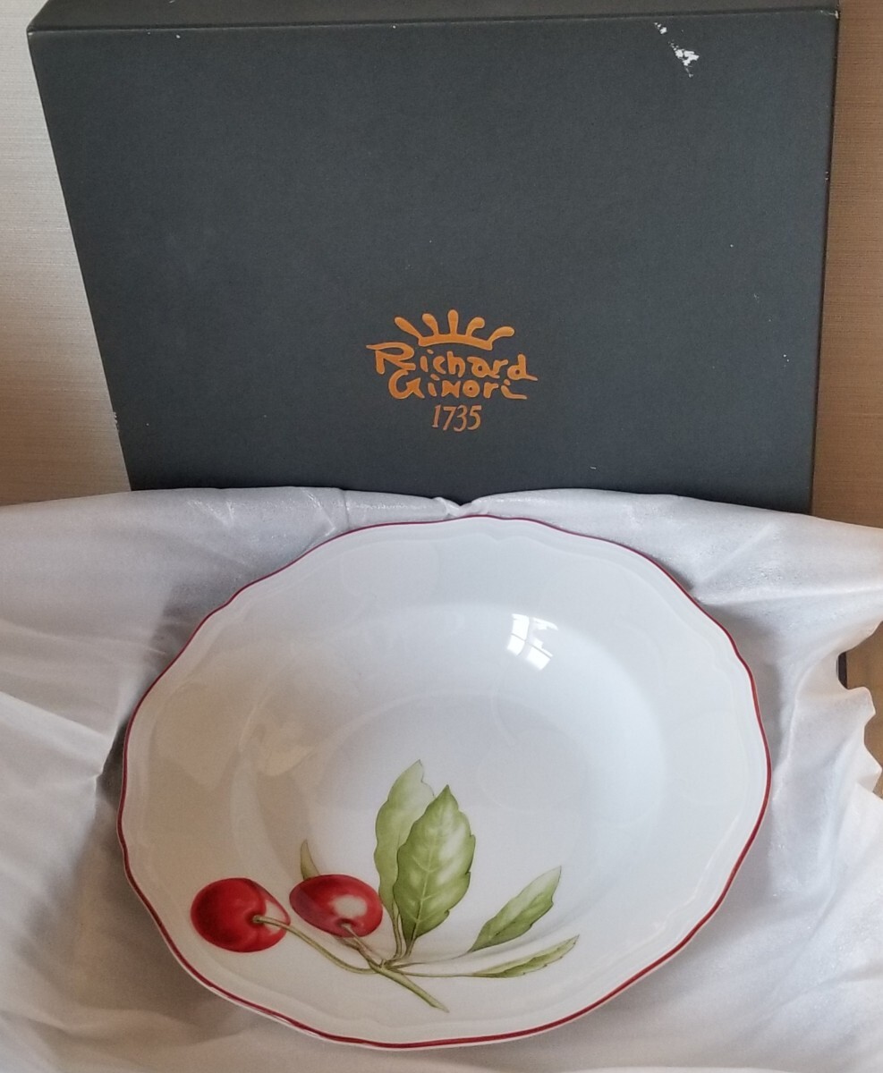 - T-388【美品】◆リチャードジノリ◆アンティコチェリー スープ プレート 深皿 24cm 洋食器 保管品 Richard 1735年/イタリア 説明書付