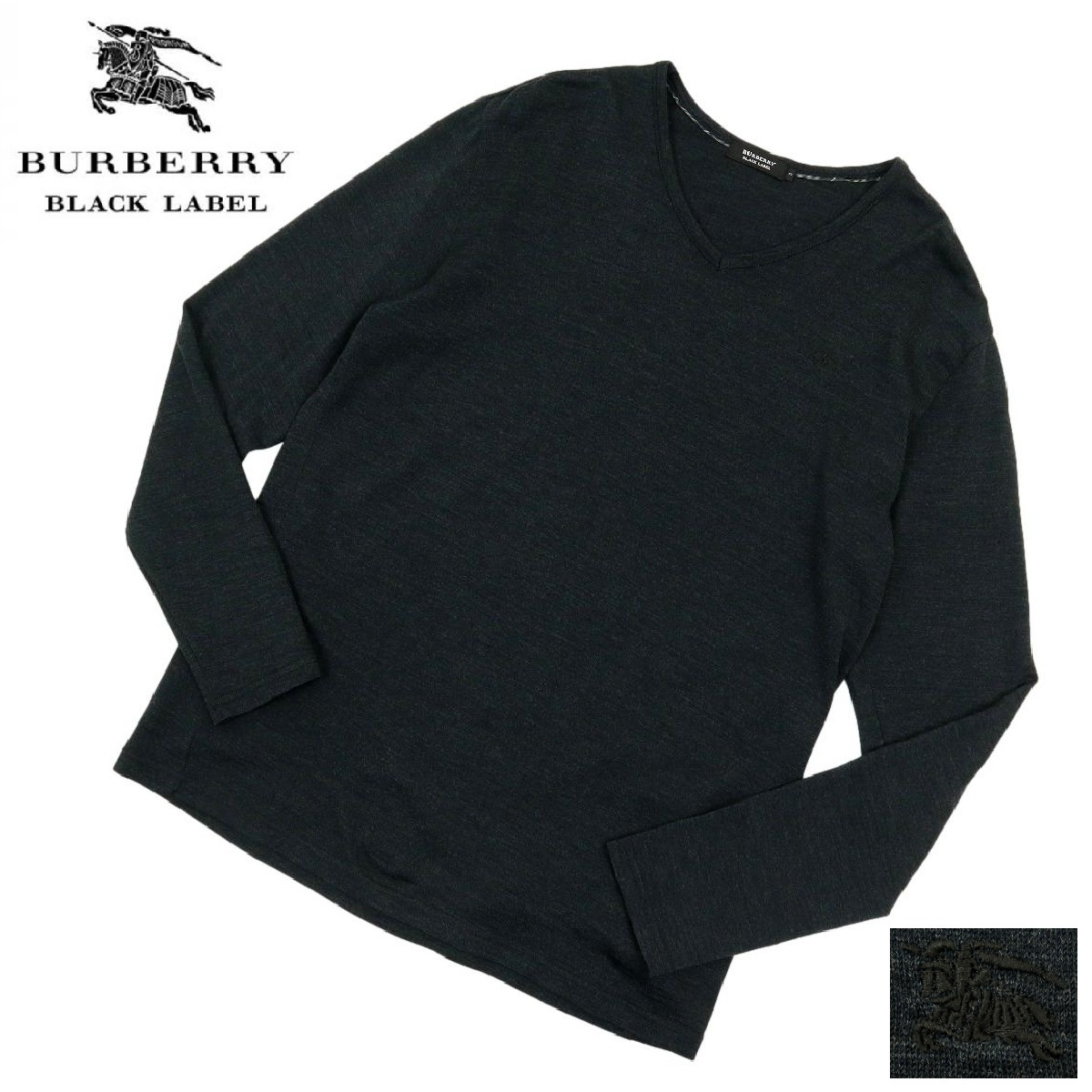 - 【B3346】【新品同様】【羊毛100%】BURBERRY BLACK LABE バーバリーブラックレーベル Vネックセーター ホース刺繍 ホースマーク ウール