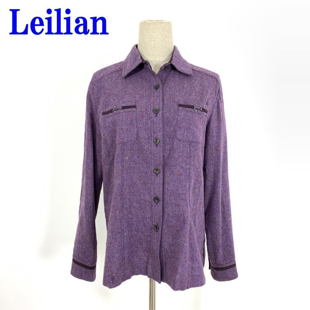 - レリアン 長袖シャツ ブラウス ウール Leilian パープル大きいサイズ 紫 13 C2323