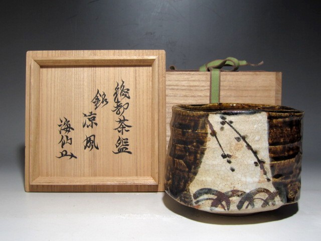 - 古織部茶碗「涼風」井口海仙(裏千家淡々斎の弟)花押☆z285