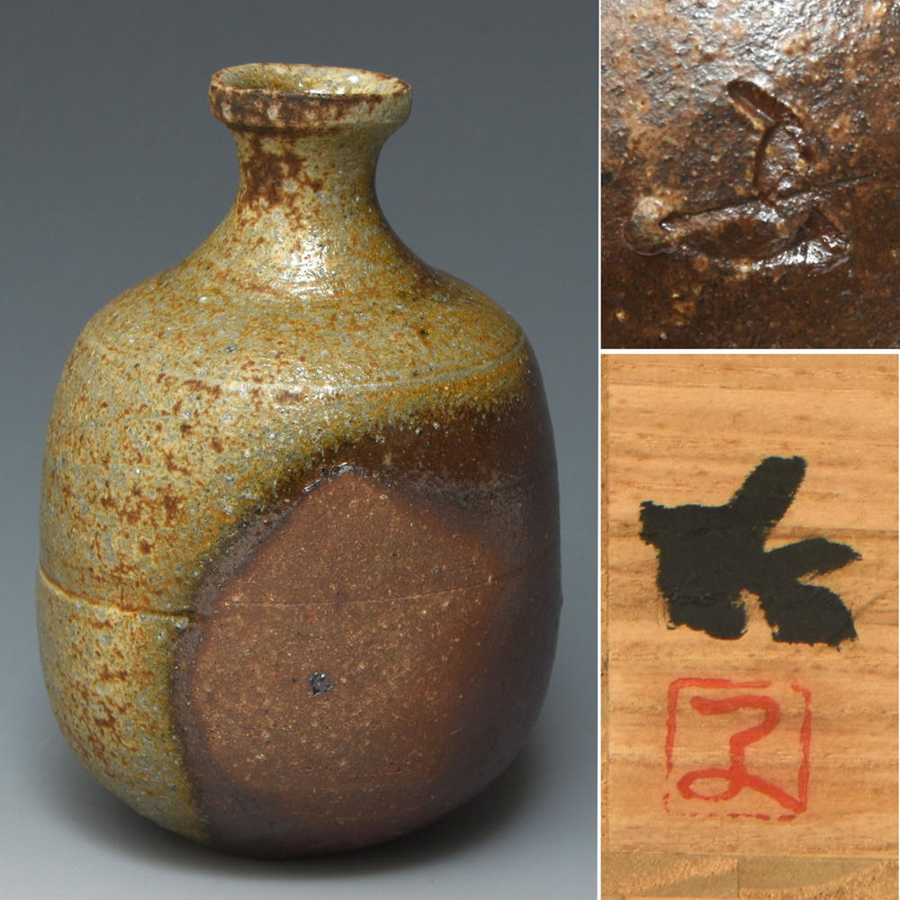 > 藤原均(造)備前徳利 胡麻出来 共箱 共布 しおり 酒器 陶磁器 花器 花瓶 茶道具 華道具 z9893o