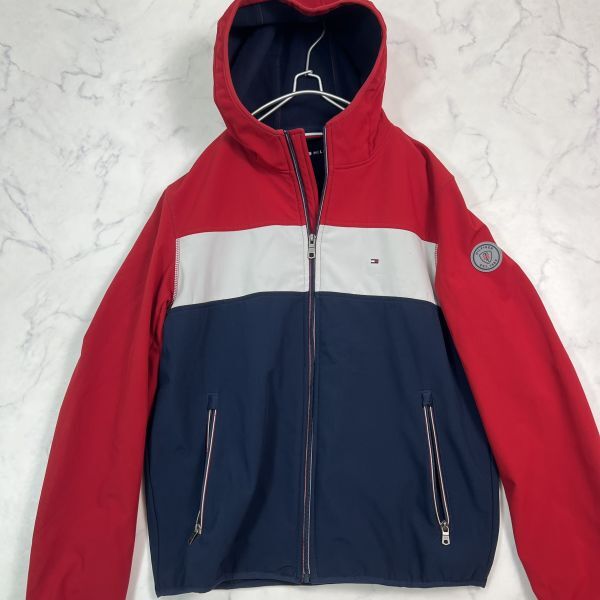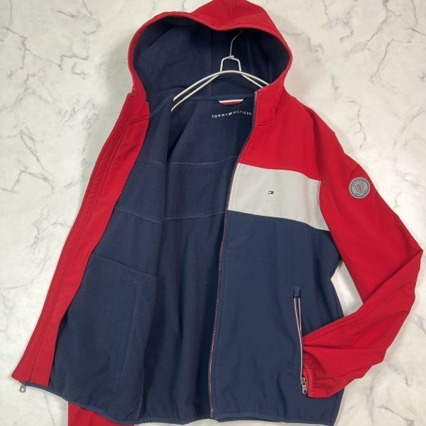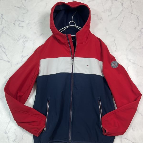 > 美品トミーヒルフィガー ヘビーウェイトパーカー コート 裏起毛 袖ラバーロゴ トリコロール フード メンズ XL TOMMY HILFIGER B0684