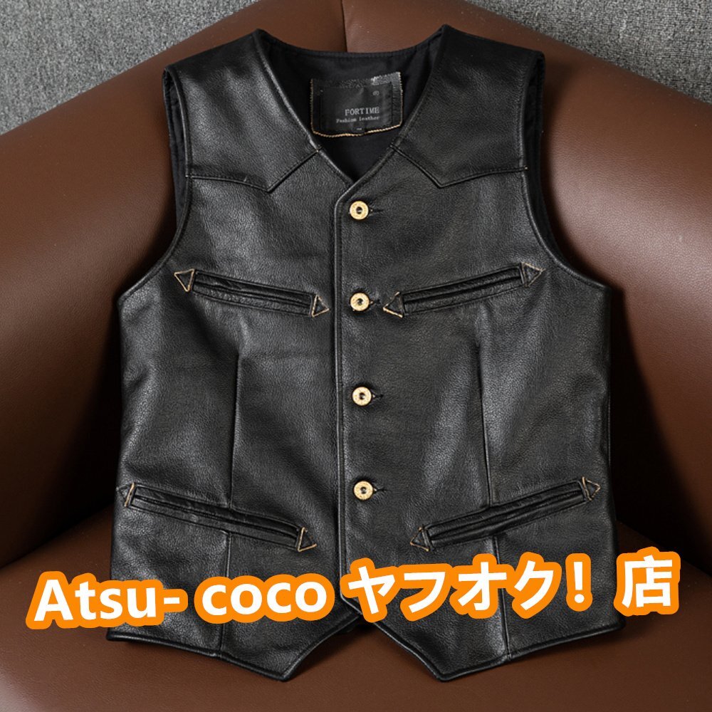 - ハイソンハイド レザーベスト バイクベスト カウハイド 牛革 機関車 メンズファッション 革ジャン 本革 シングルベスト S~4XL