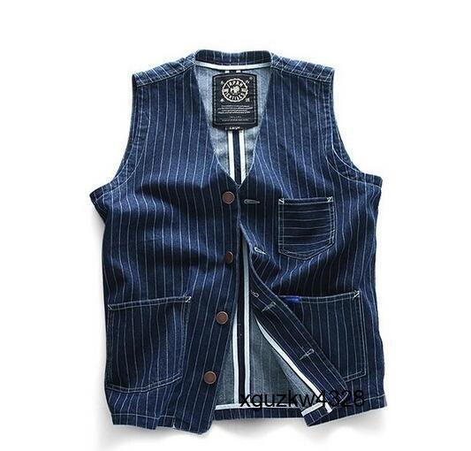- レトロ ヴィンテージ仕様 ストライプ カウボーイ インディゴ デニム ジレベスト M~2XL メンズ 大きいサイズ