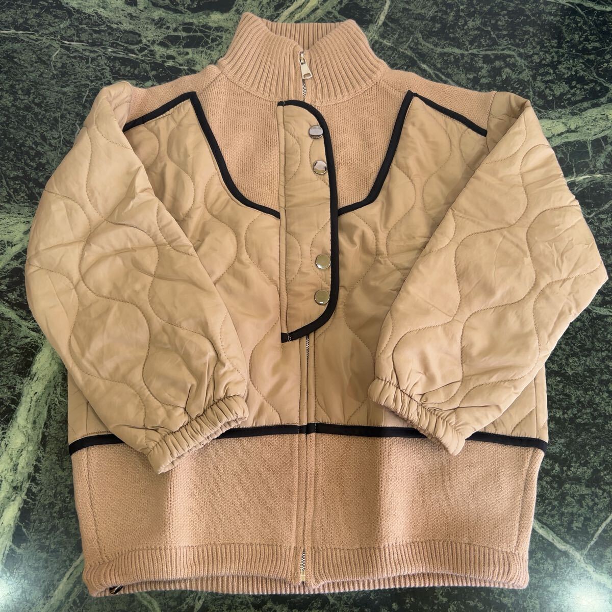 - 【新品】タグ付き!cocomomo★ココモモ 異素材キルティングジャケット ブラウン フリーサイズ 配色パイピング 切り替えニット レディース