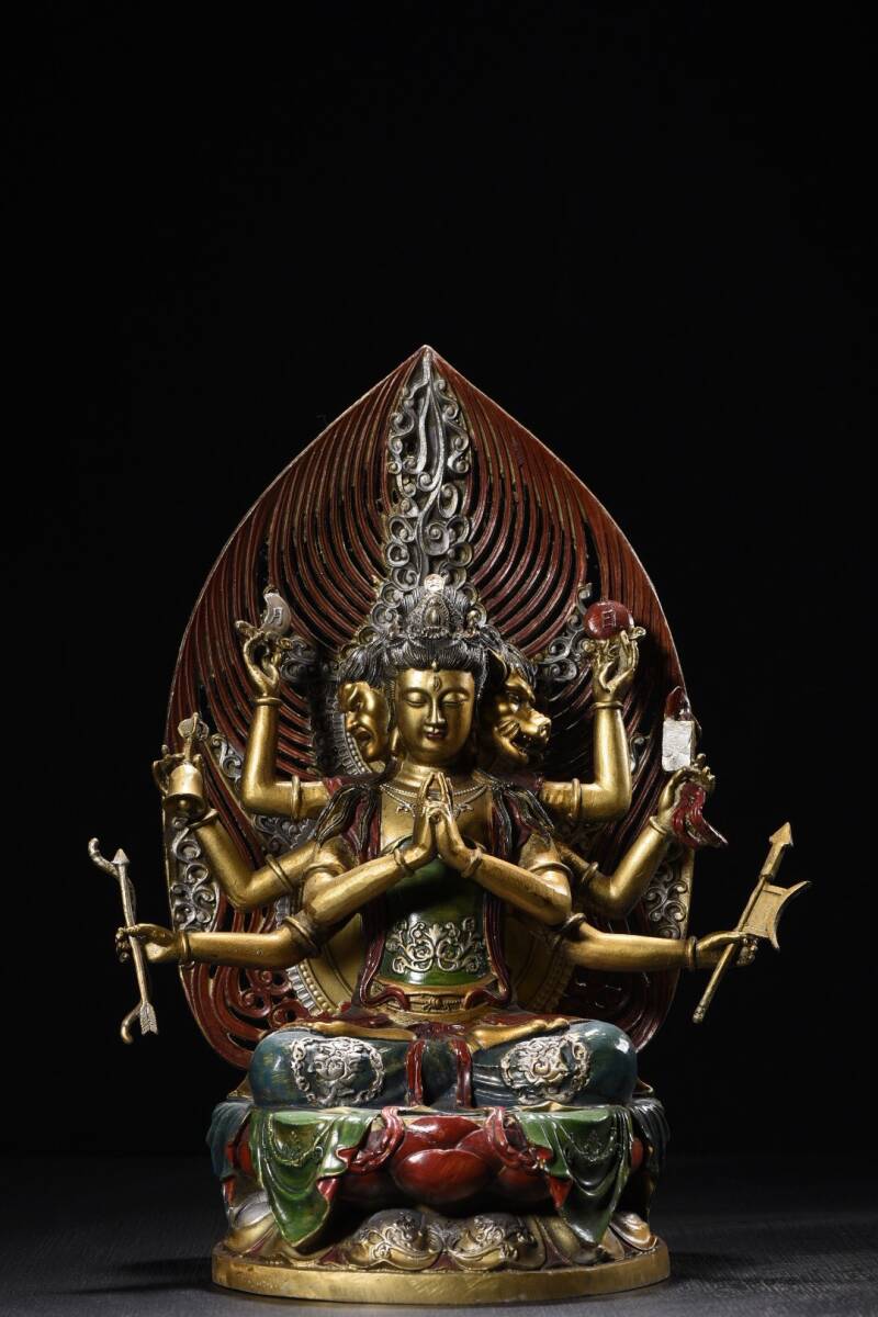 - 『館蔵珍品 銅製 金鍍 彩繪 斗姆元君像』置物 賞物 貴重物品 収蔵品 中国古美術