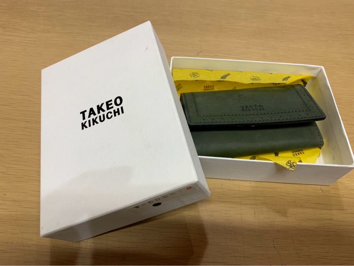 - レザーキーケース 箱入り TK TAKEO KIKUCHI モスグリーン 保管品 少し劣化