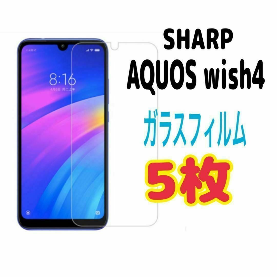 - 5枚 AQUOS wish 4 強化 ガラス フィルム 画面保護 SHARP
